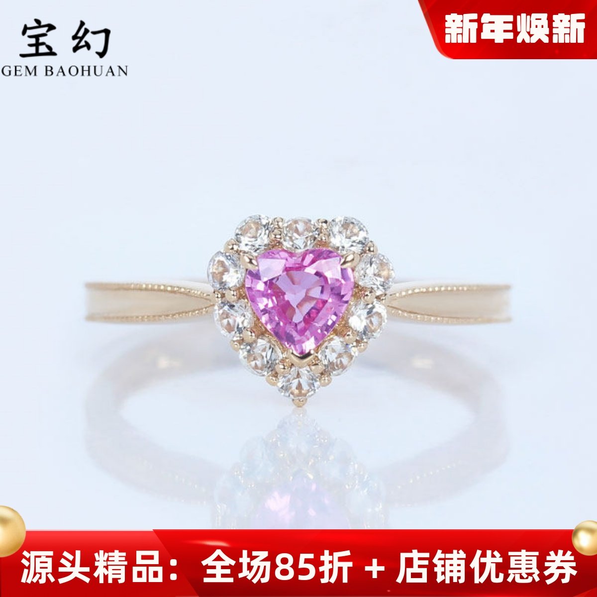 18K玫瑰金樱花粉色天然蓝宝石心形小戒指 甜美晶莹手饰女款正品