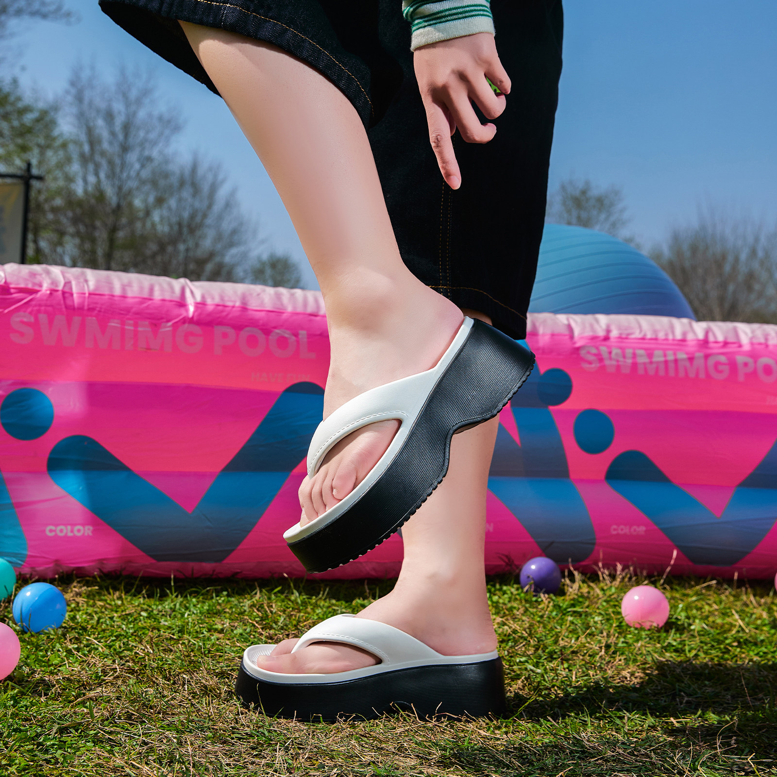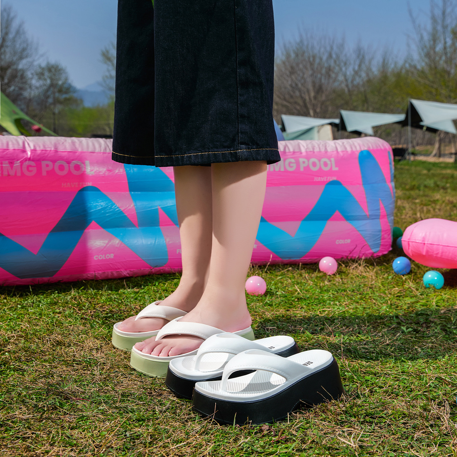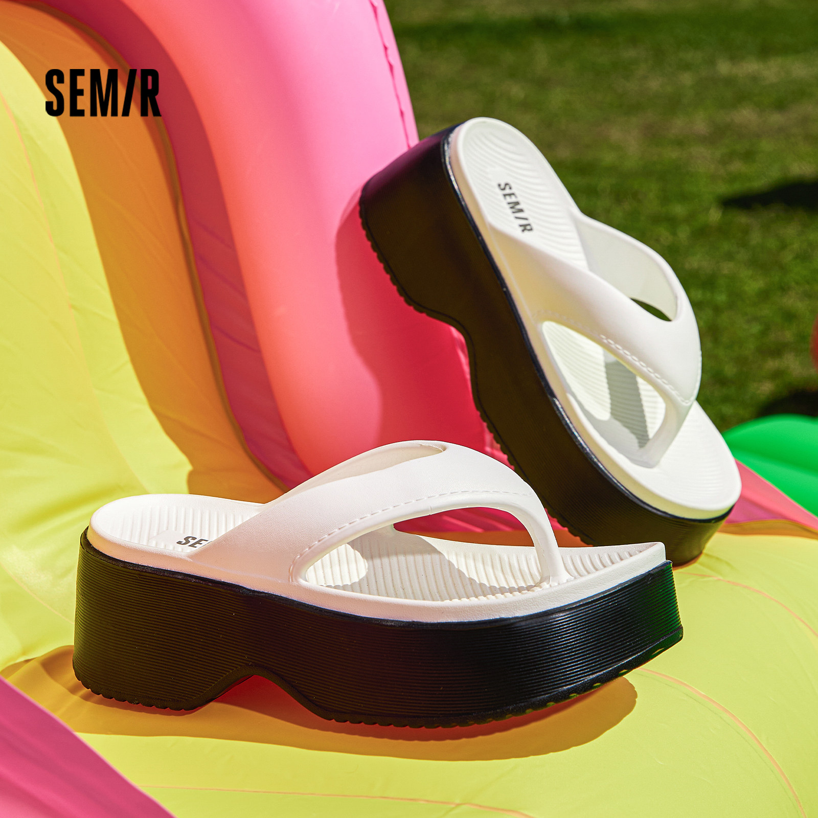 Semir女鞋人字拖2026年夏季新款厚底外穿坡跟夹趾海边沙滩拖鞋