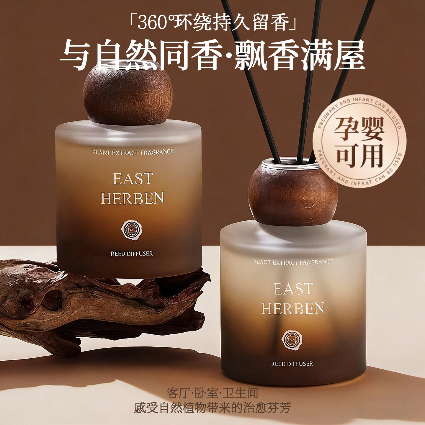 香薰挥发木家用无火香薰精油卧室内持久花露水驱蚊车载实木扩香木
