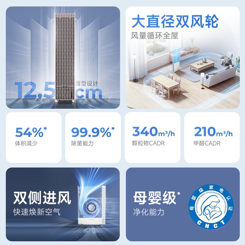 安德迈母婴级除过敏源宠物吸猫毛浮毛空气净化器除臭除尘二手烟