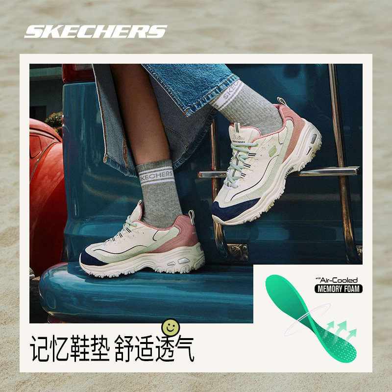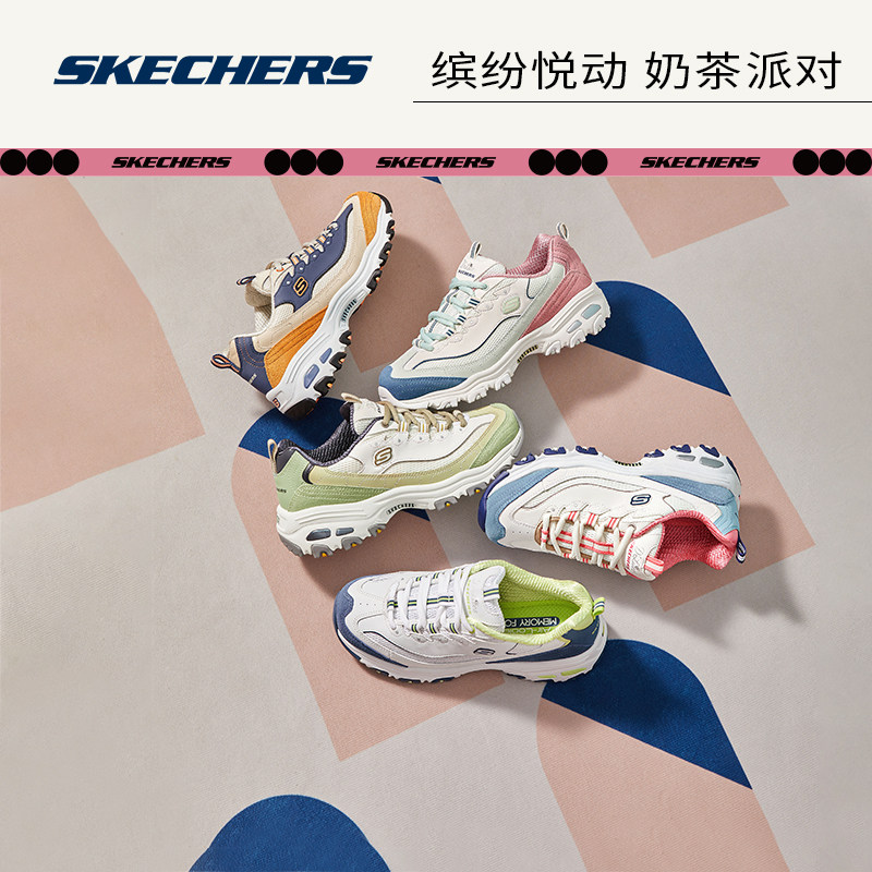 Skechers斯凯奇奶茶熊复古厚底春秋老爹鞋女运动鞋亲子款休闲鞋子
