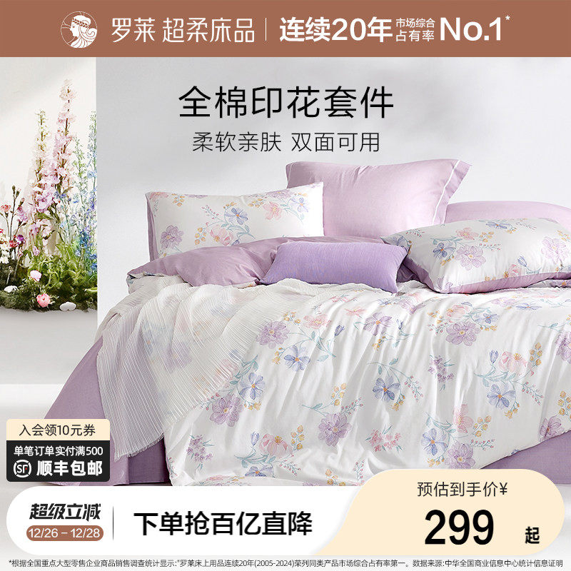 罗莱家纺2025新款全棉纯棉三件套床单被套被罩床上用品四件套
