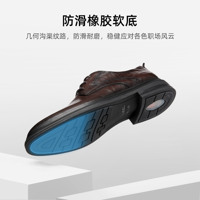 海澜之家男鞋秋冬季正装商务真皮布洛克内增高皮鞋男款加绒德比鞋