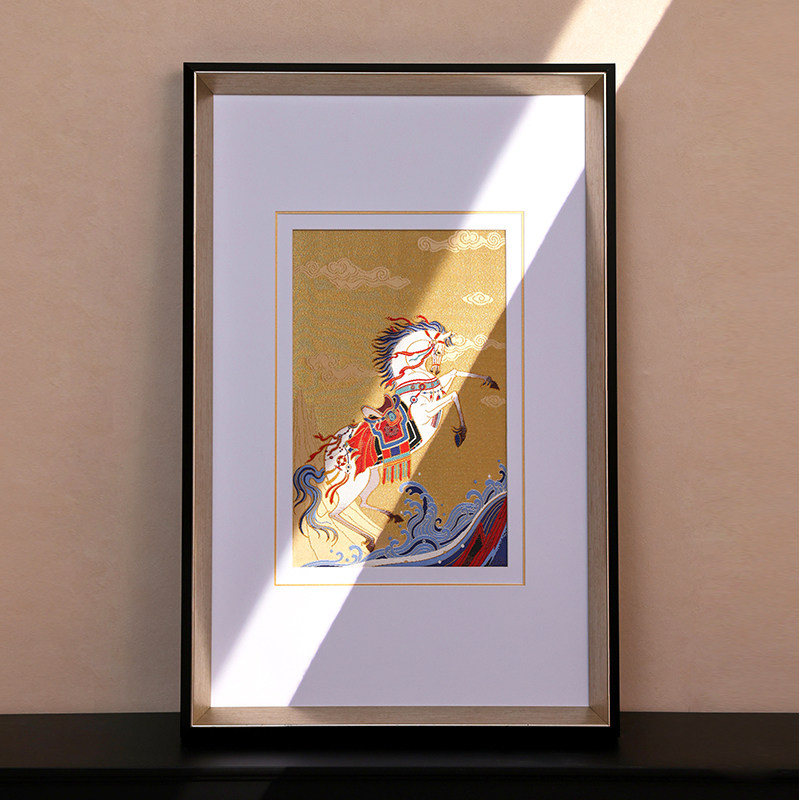 南京云锦研究所 一马当先镜框挂画 商务礼赠