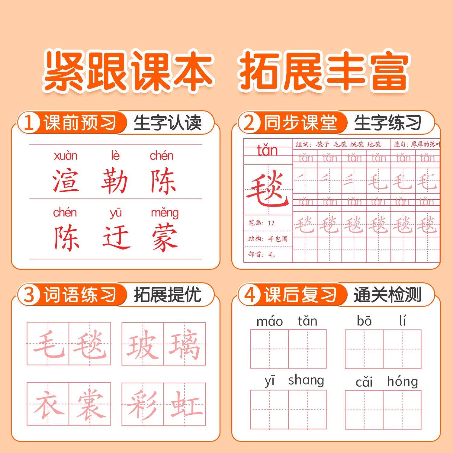 六品堂课前预习练字帖二年级三四年级上册下册小学生专用语文同步字帖每日一练人教版课本生字组词段落描红钢笔书写练字硬笔书法