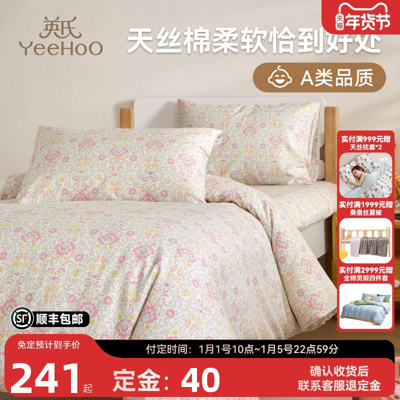 英氏儿童春秋四件套床上用品天丝棉被套床上用品三件套床单欧若拉