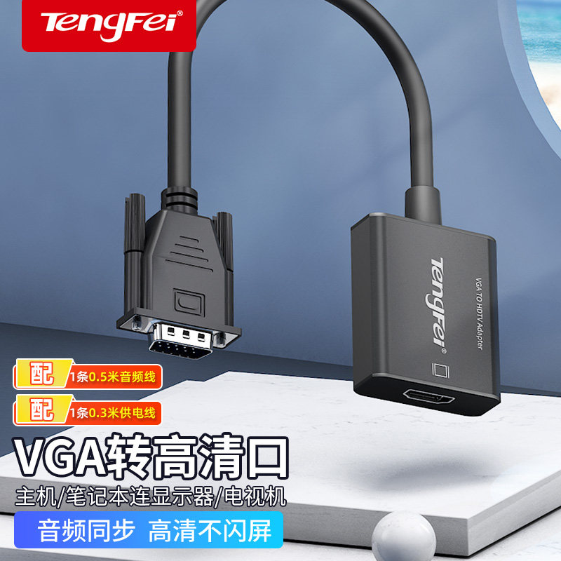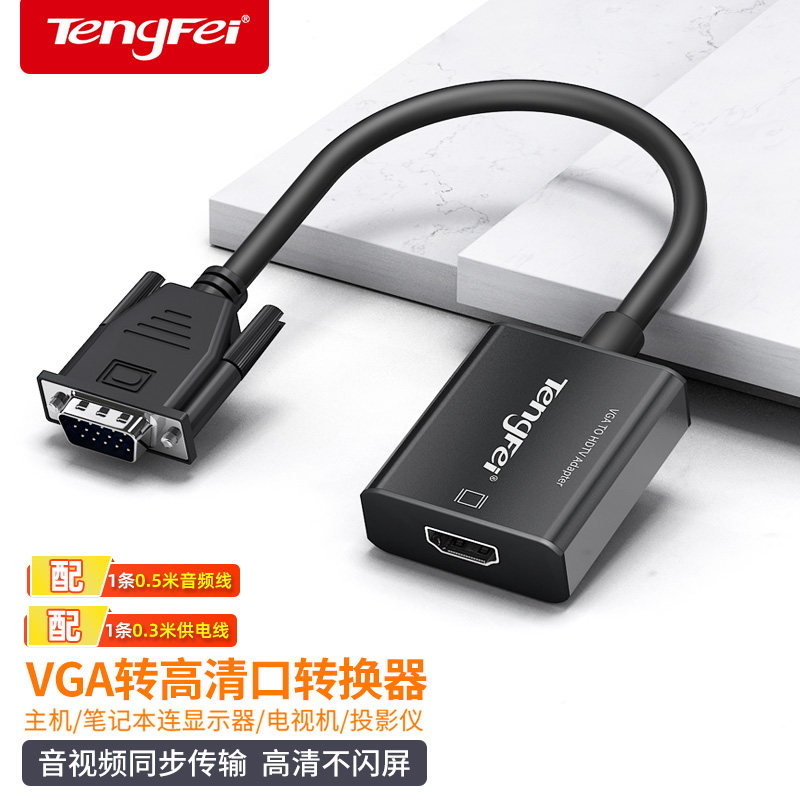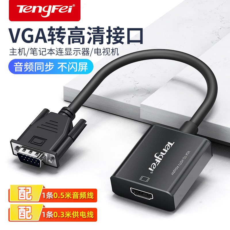腾飞VGA转HDMI转换头高清线音频主机笔记本电脑连显示器电视转换