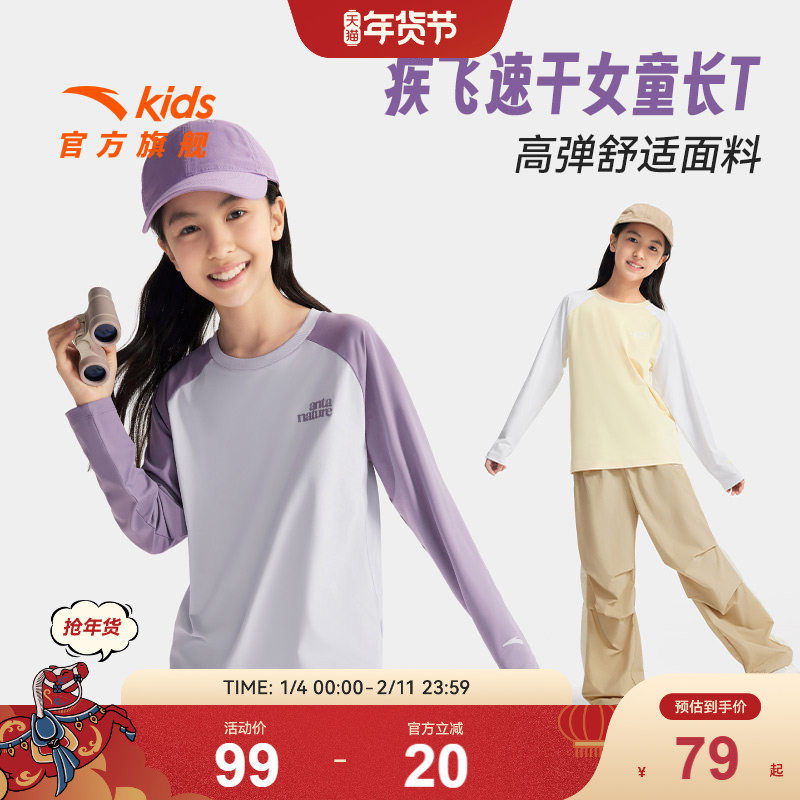 安踏儿童装户外疾飞速干长袖丨弹力打底衫长T恤2025年秋女童上衣