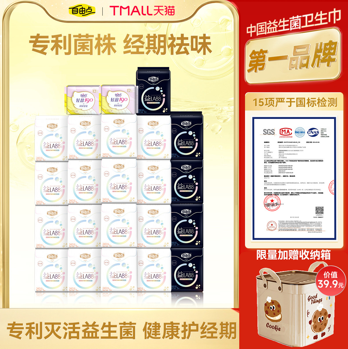 【选赠洗衣杯】自由点益生菌超薄透气卫生巾姨妈巾日夜用旗舰店