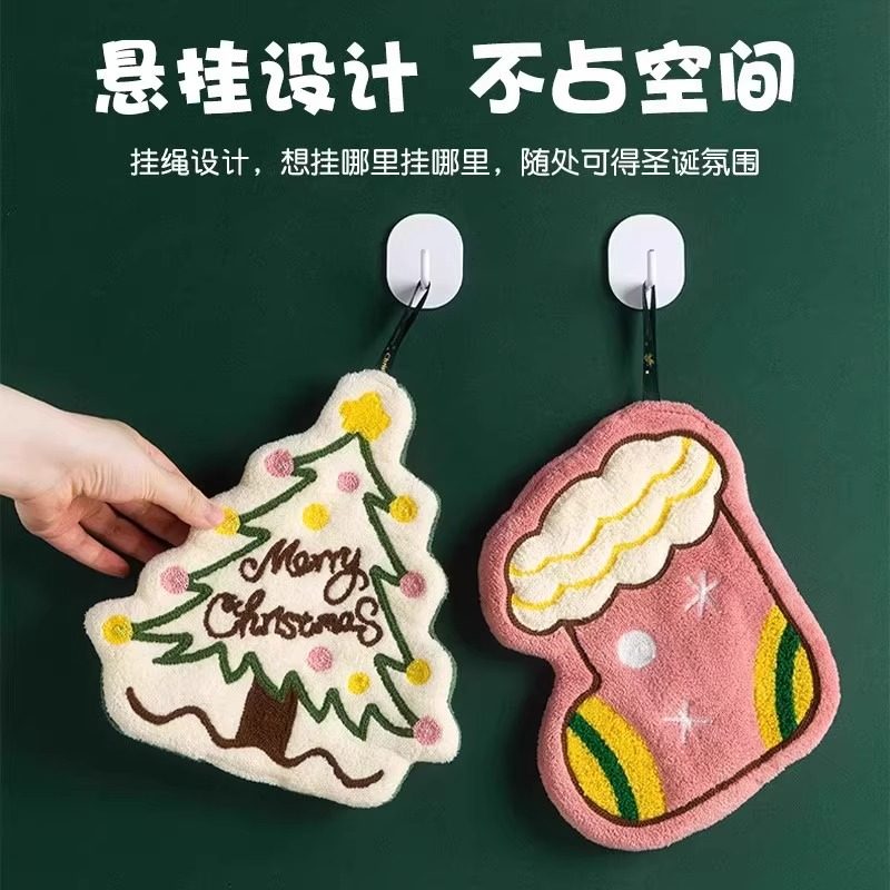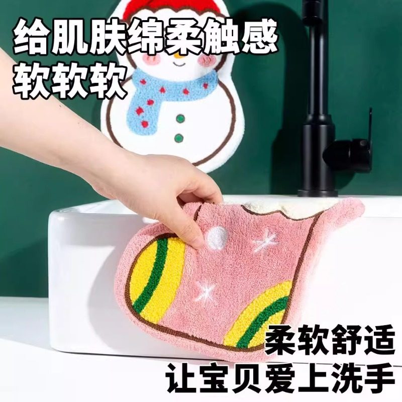 可爱擦手巾圣诞款挂式加厚吸水卫生间毛巾洗手巾厨房抹布卡通手帕