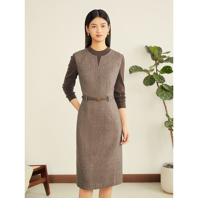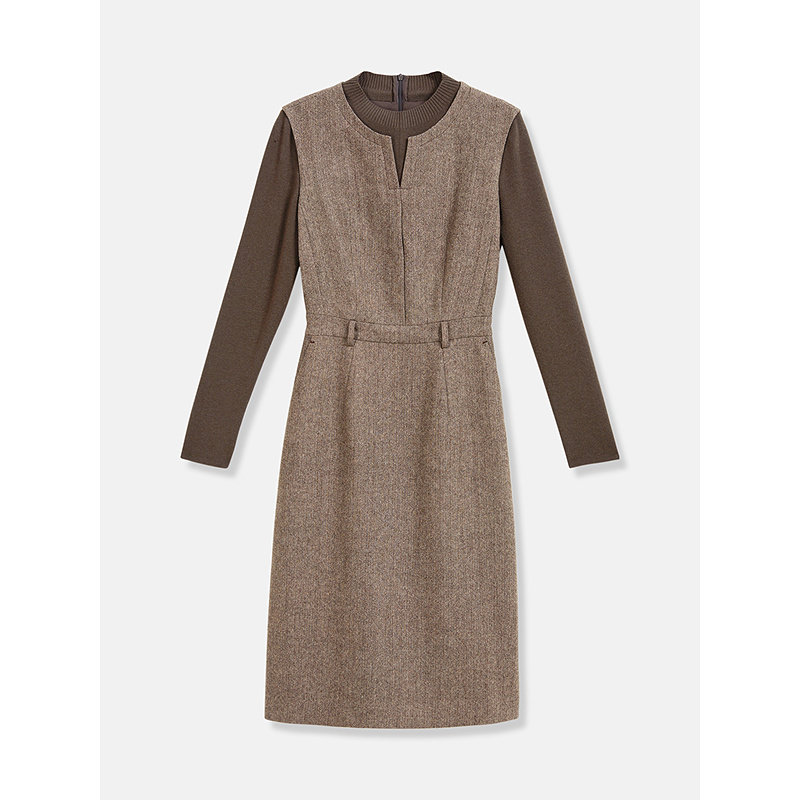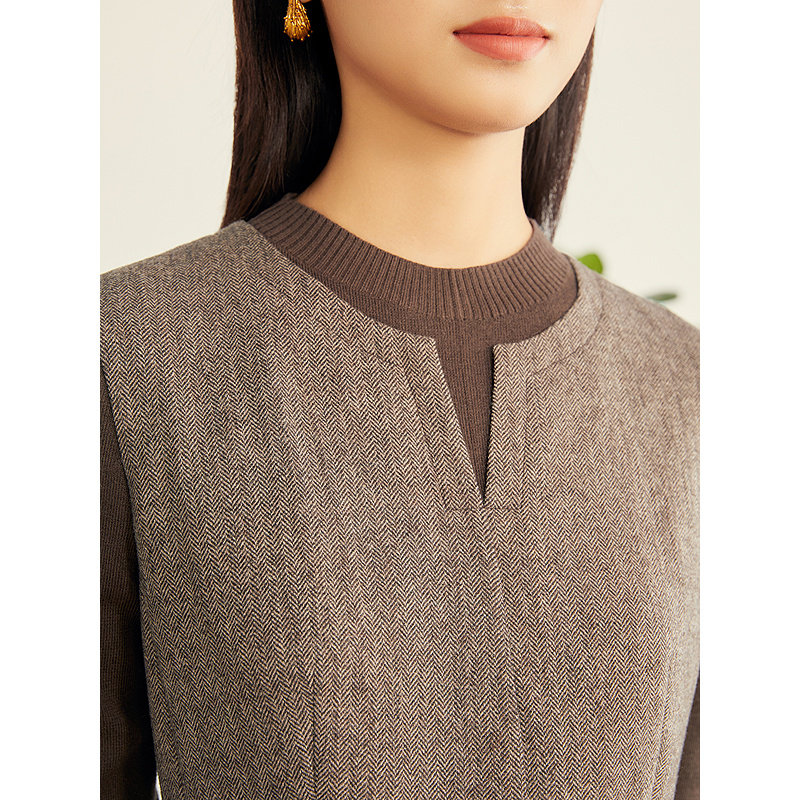 YINER音儿专选2025秋季新款法式羊毛混纺针织拼接假两件连衣裙
