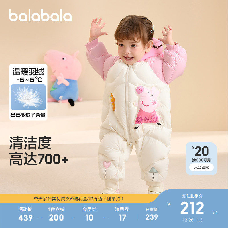 【小猪佩奇IP】巴拉巴拉童装婴儿羽绒连体衣女童宝宝抱衣爬服萌趣