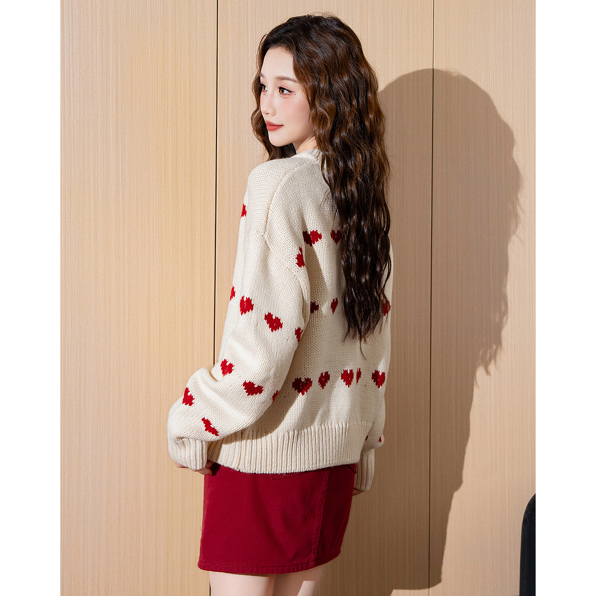 雪中飞红色毛衣开衫女春装2026含绵羊毛新年拜年服本命马年衣服PC