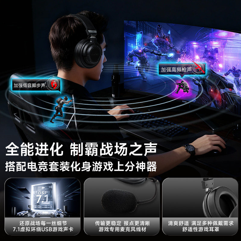觅声射手座有线头戴式耳机电竞游戏专用台式电脑usb麦克风二合一