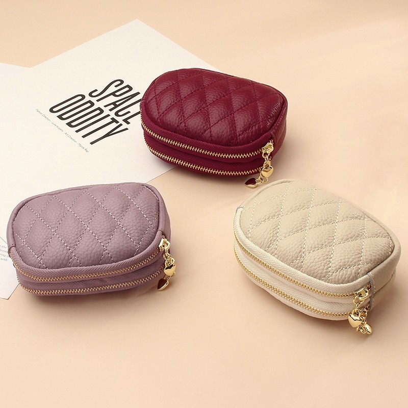 2025新款双层拉链零钱包女小巧便携小钱包菱格圆形小手包手拿小包