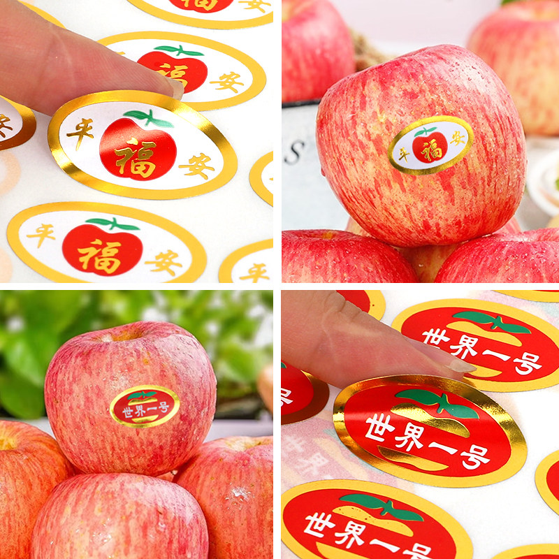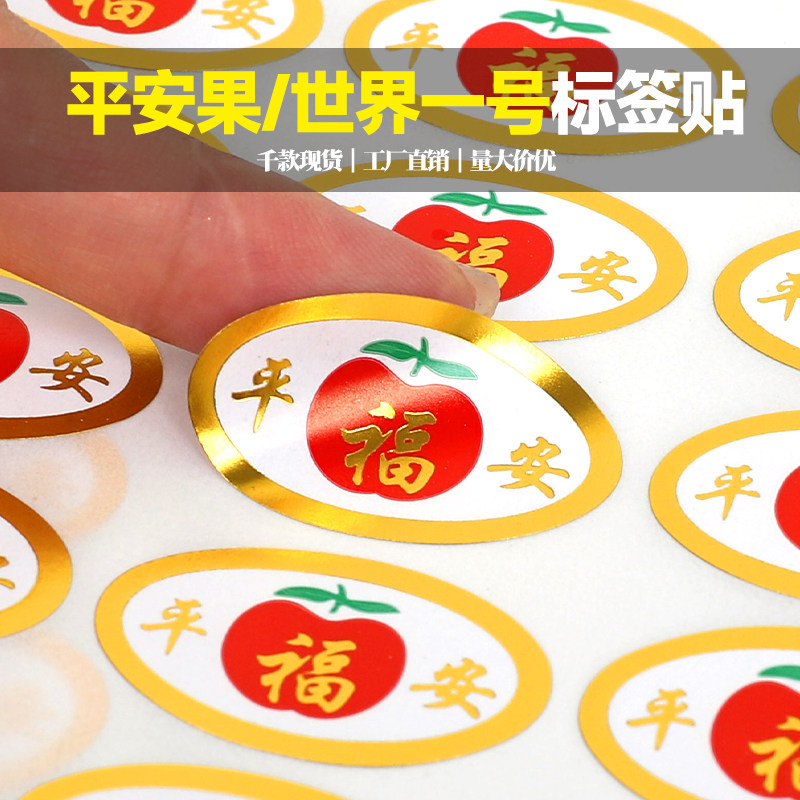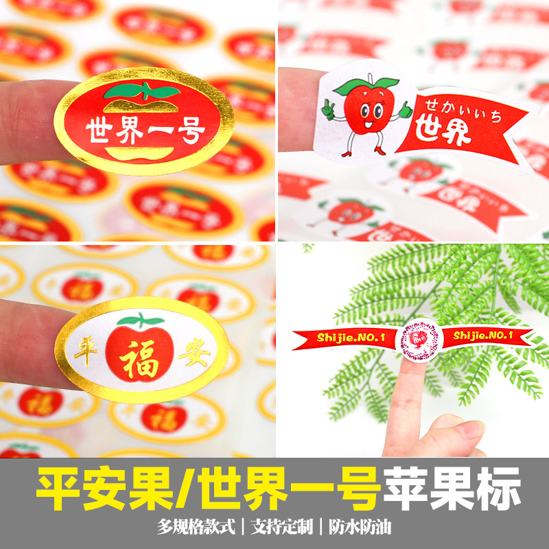 圣诞节平安果世界一苹果水果不干胶标签商标贴纸苹果水果标签定制