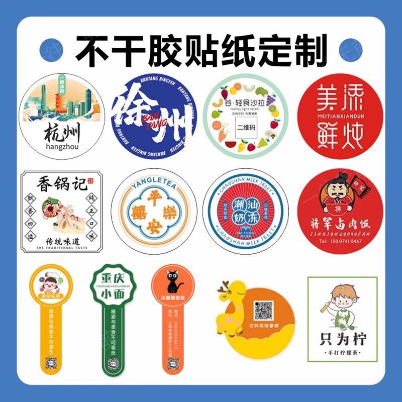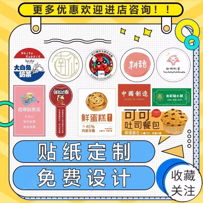 不干胶广告贴纸定制微信二维码标签定做透明烫银pvc防水烫金logo商标印刷产品标贴外卖封口贴订制奶茶烘焙