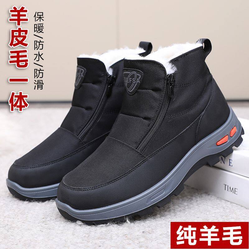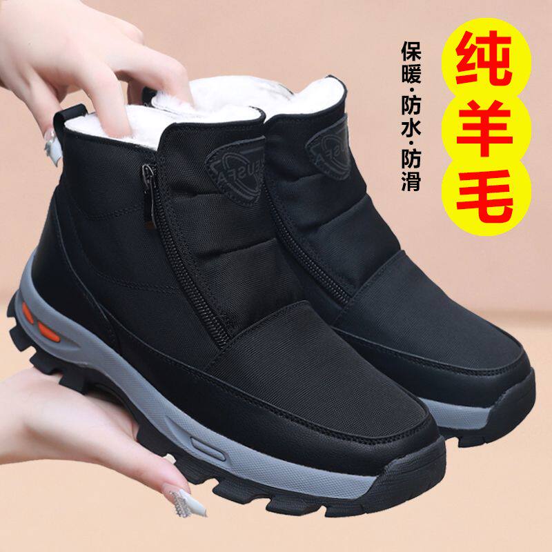 奶奶老人棉鞋冬季女羊毛鞋加厚中老年爸爸鞋雪地靴防滑防水平底