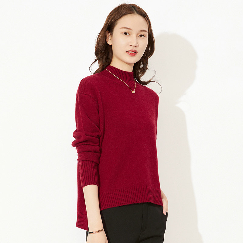 一线成衣100%羊毛纯色半高领针织保暖气质百搭长袖