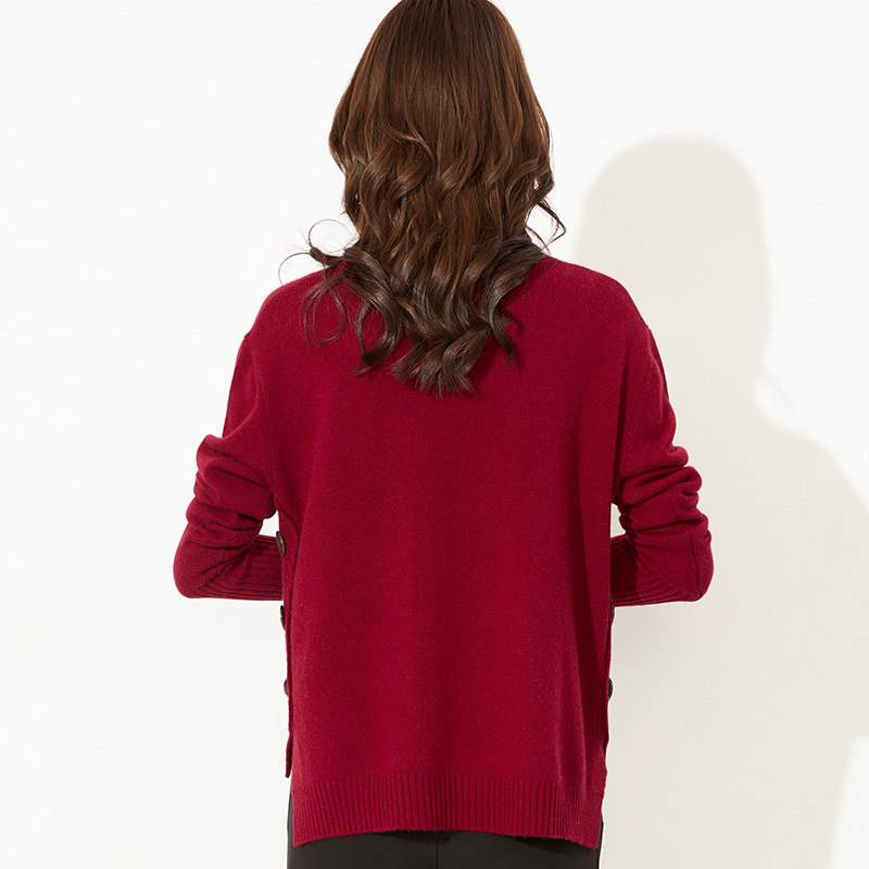 恒源祥25秋冬100%羊绒毛衣女新款套头针织打底衫大红色毛线衣长袖