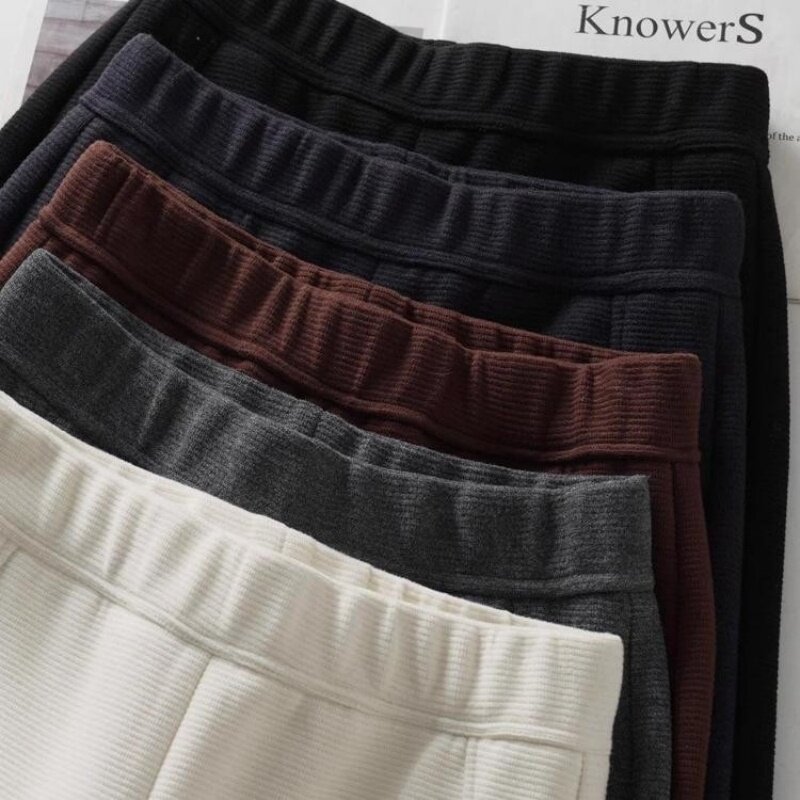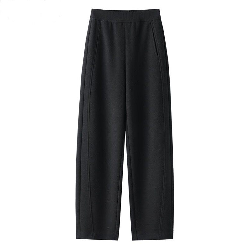 灰色阔腿裤女秋冬季2025新款毛呢糯米裤加绒休闲九分直筒裤子大码