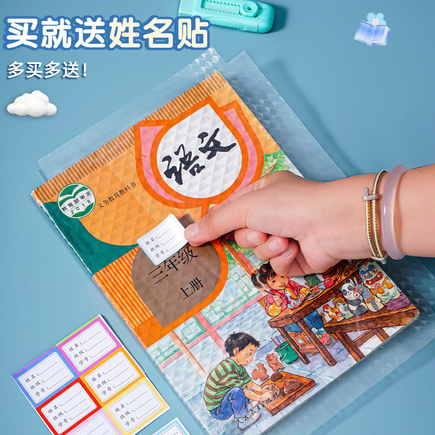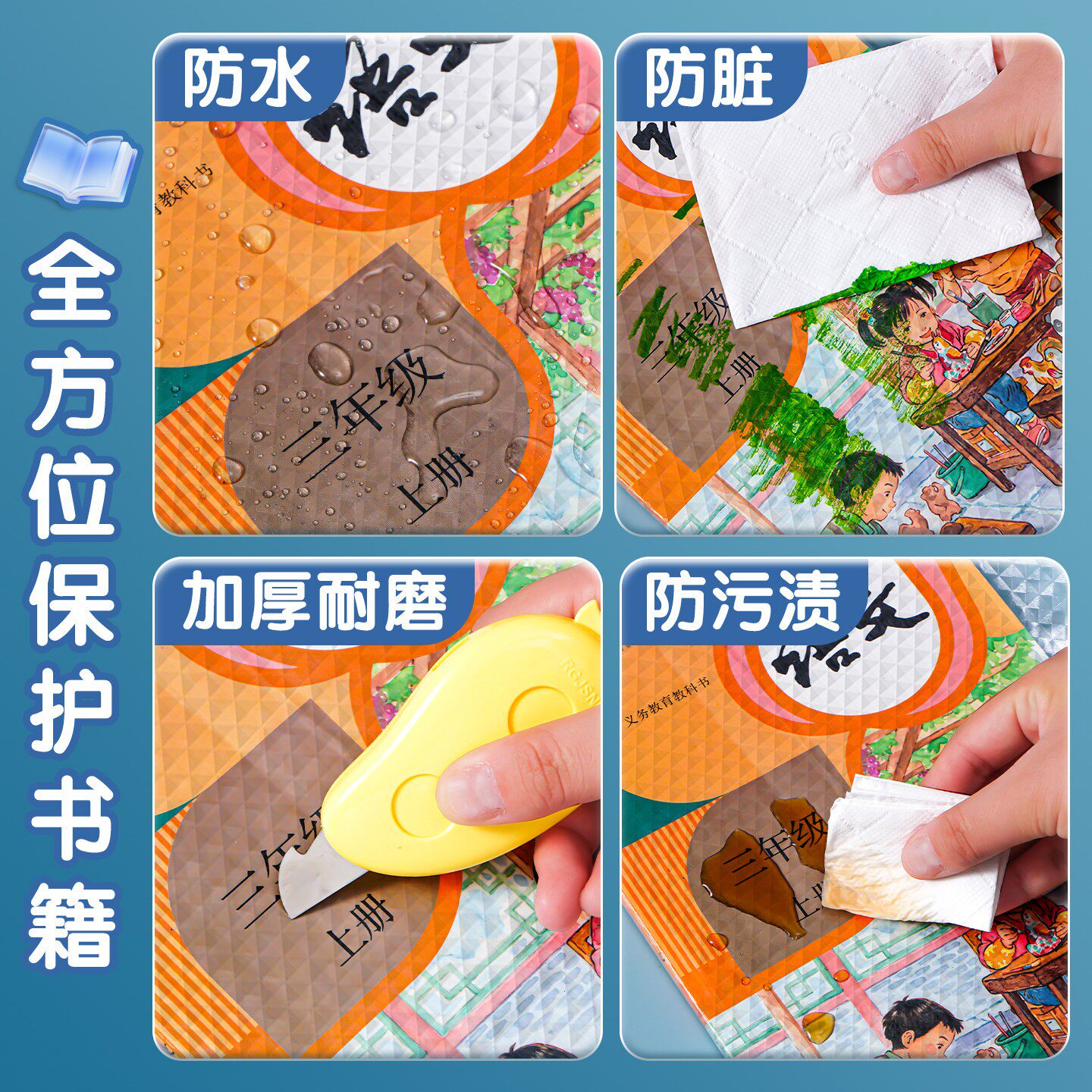 包书皮自粘透明磨砂书皮纸小学生专用一年级二三年上册中号16k课本2025新款书本封皮保护套书套书膜全套贴纸