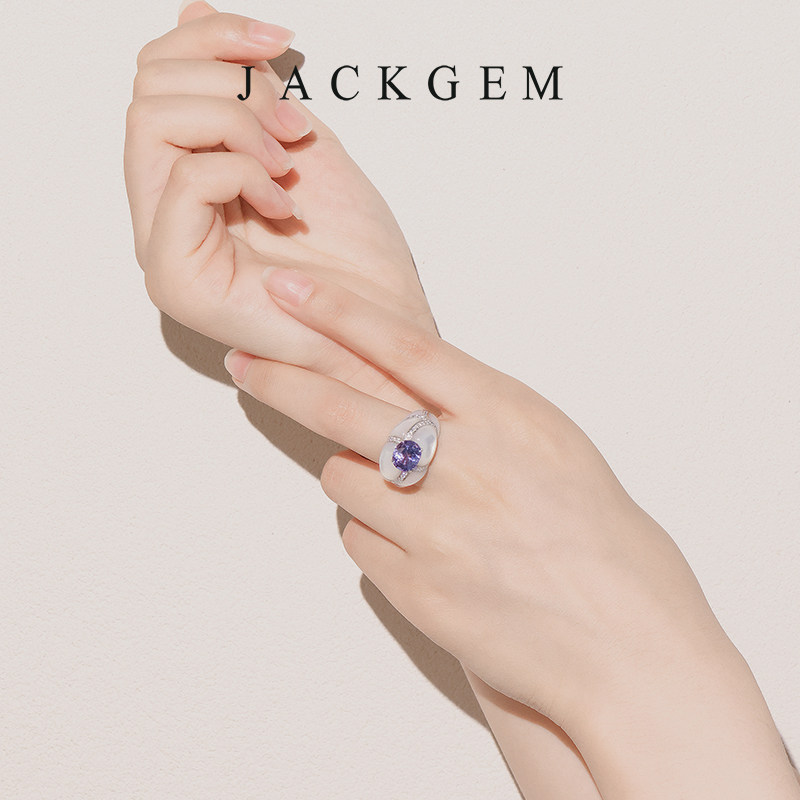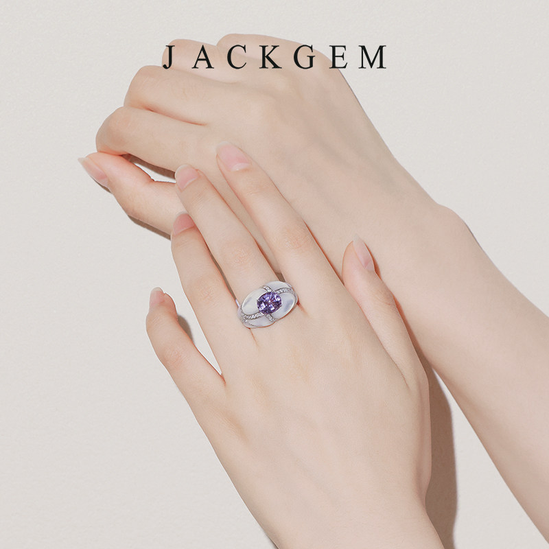 【彰显2】尖晶石戒指白贝母戒指紫色宝石戒指18K金宝石首饰女戒H1