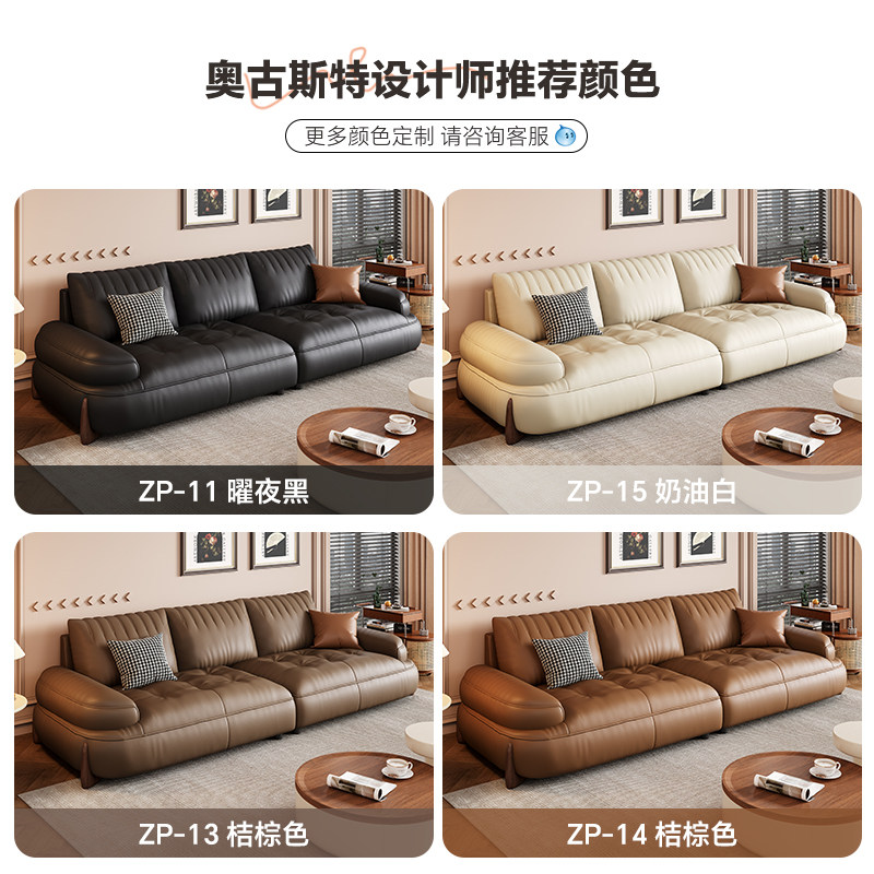 弧形真皮沙发客厅现代简约大小户型意式轻奢三人位头层牛皮艺沙发