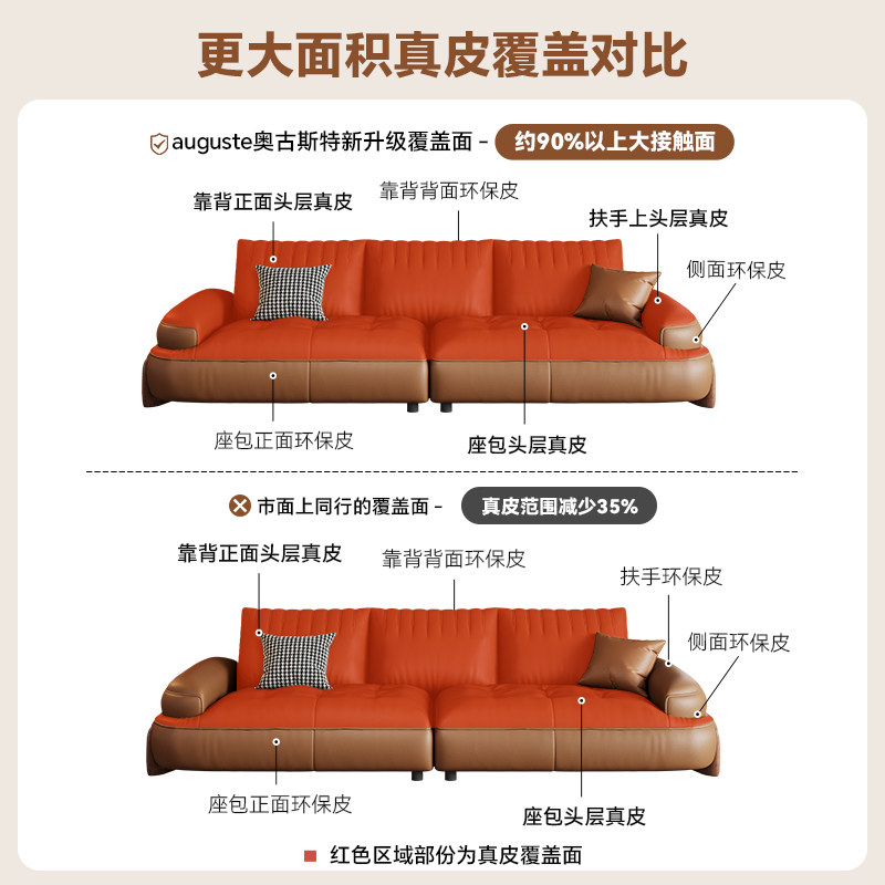 左右沙发真皮现代简约直排客厅大象耳朵贵妃位轻奢三人位家具5161