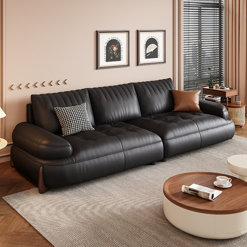 舒梵银河沙发/黑色纳帕厚牛皮沙发/中古包豪斯北欧极简直排小户型