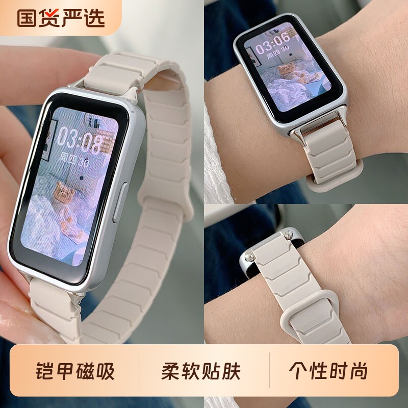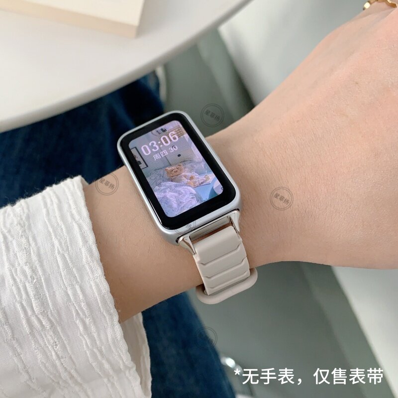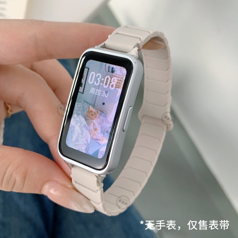 适用华为手环10磁吸NFC硅胶表带9女款8高级7透气6/pro手表带荣耀10秋季9腕带7智能6手表红色玫瑰金银色