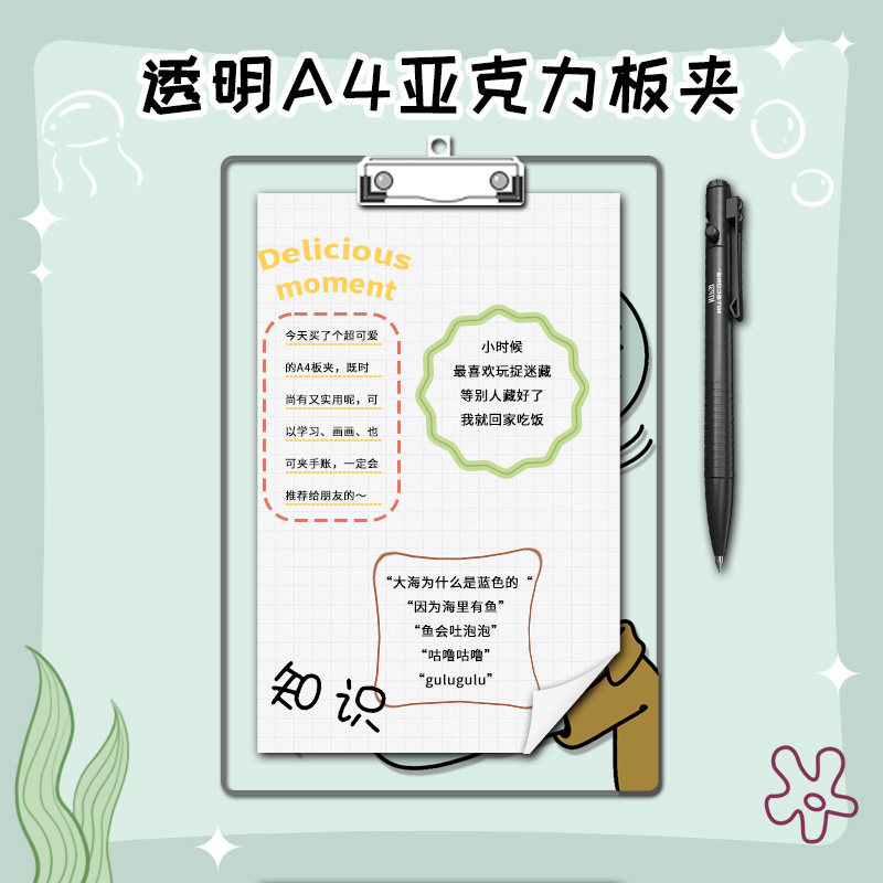 创意a4亚克力夹板文件夹小学生专用写字书写垫板学生固定卡通板子资料板夹文件夹试卷夹写字板学习用品