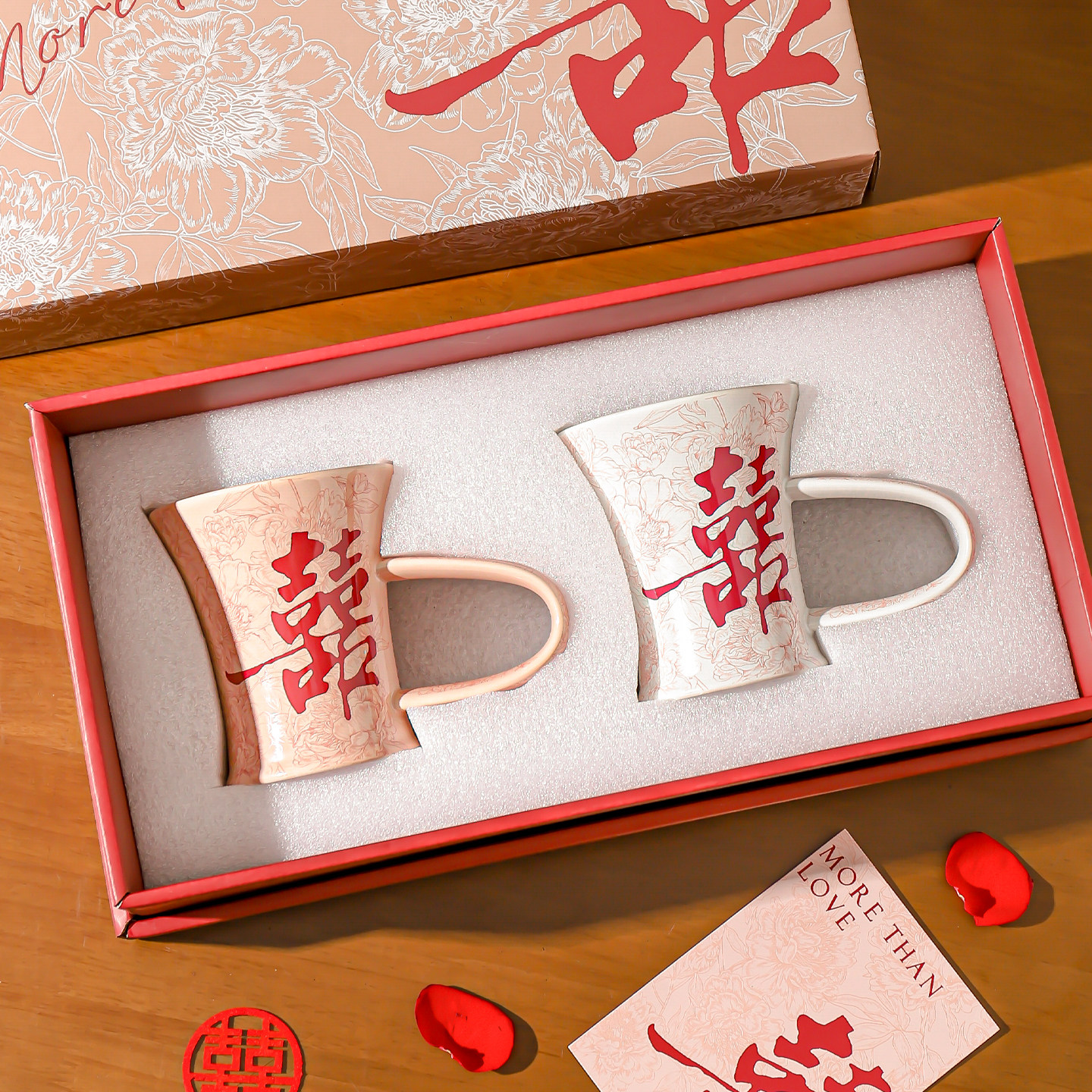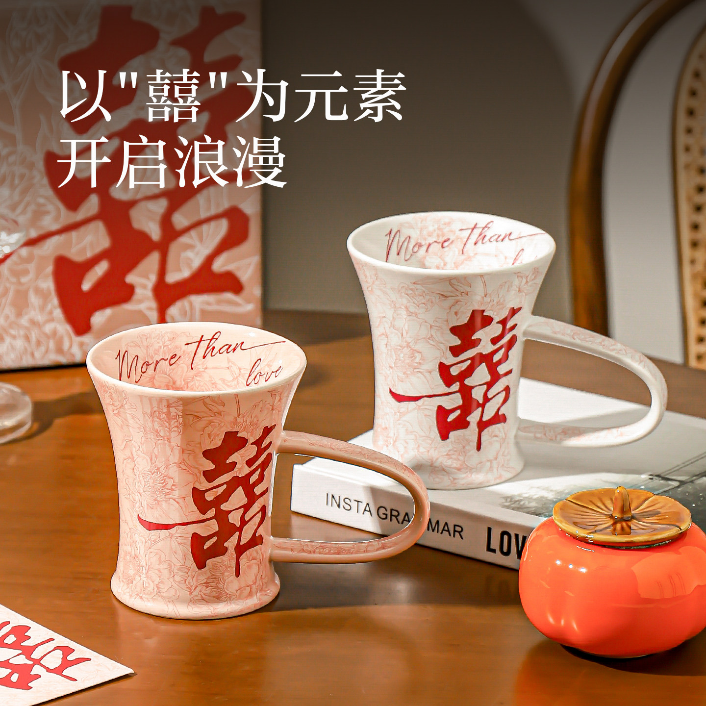 川岛屋喜悦马克杯家用情侣杯高级感一对杯子套装结婚新婚乔迁礼物