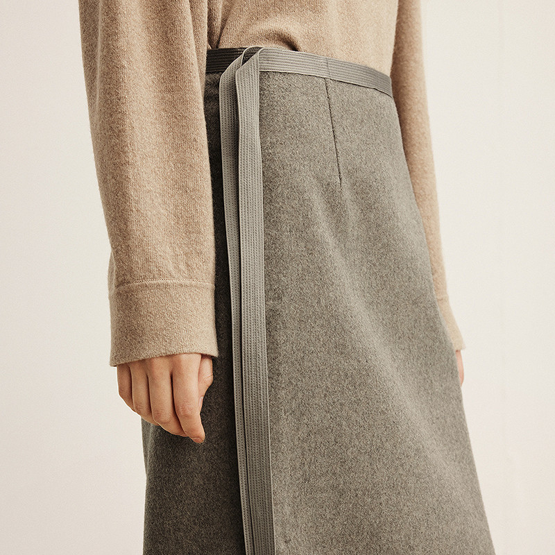 【商场同款】LESS2025冬新款优雅系带双面呢直筒半身裙2P0D14760