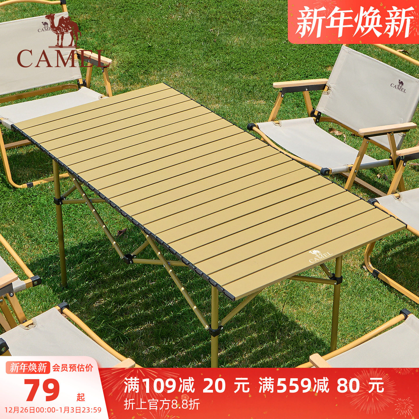 骆驼户外折叠桌铝合金野餐桌子露营桌装备蛋卷桌套装野外野营桌椅
