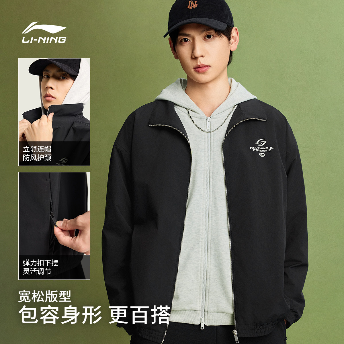李宁外套男2026春季新品情侣立领夹克宽松复古休闲梭织运动风衣女