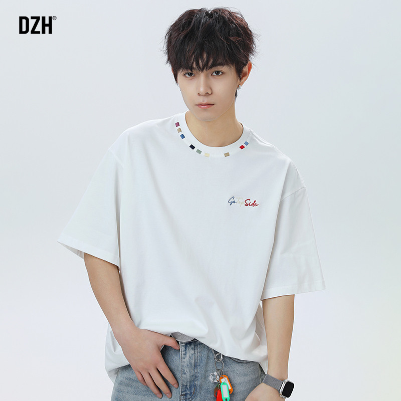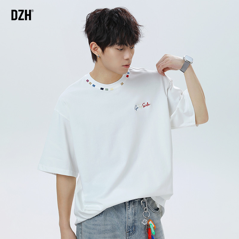 男士刺绣t恤男短袖纯棉夏季半袖上衣百搭2025新款美式体恤衫潮牌
