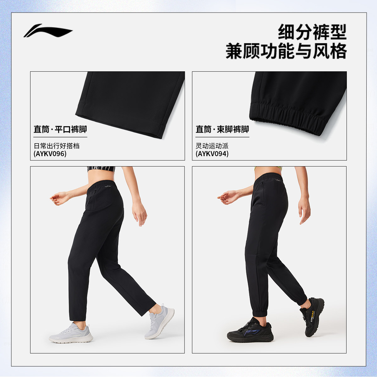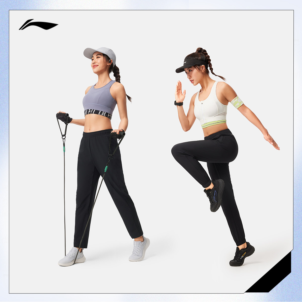 李宁运动裤女士训练黑色裤子健身跑步长裤弹力透气梭织运动速干裤