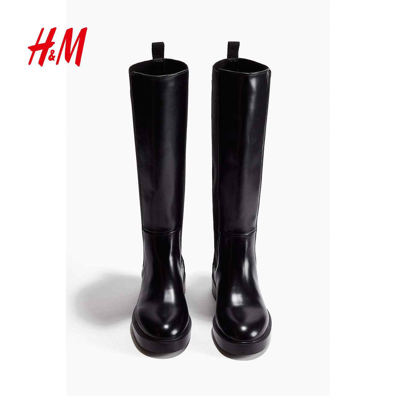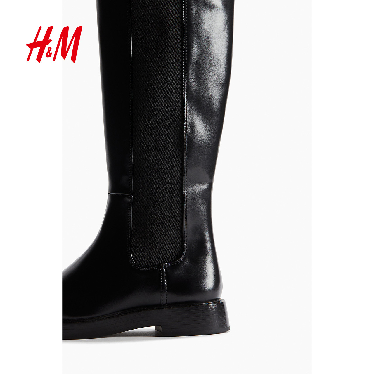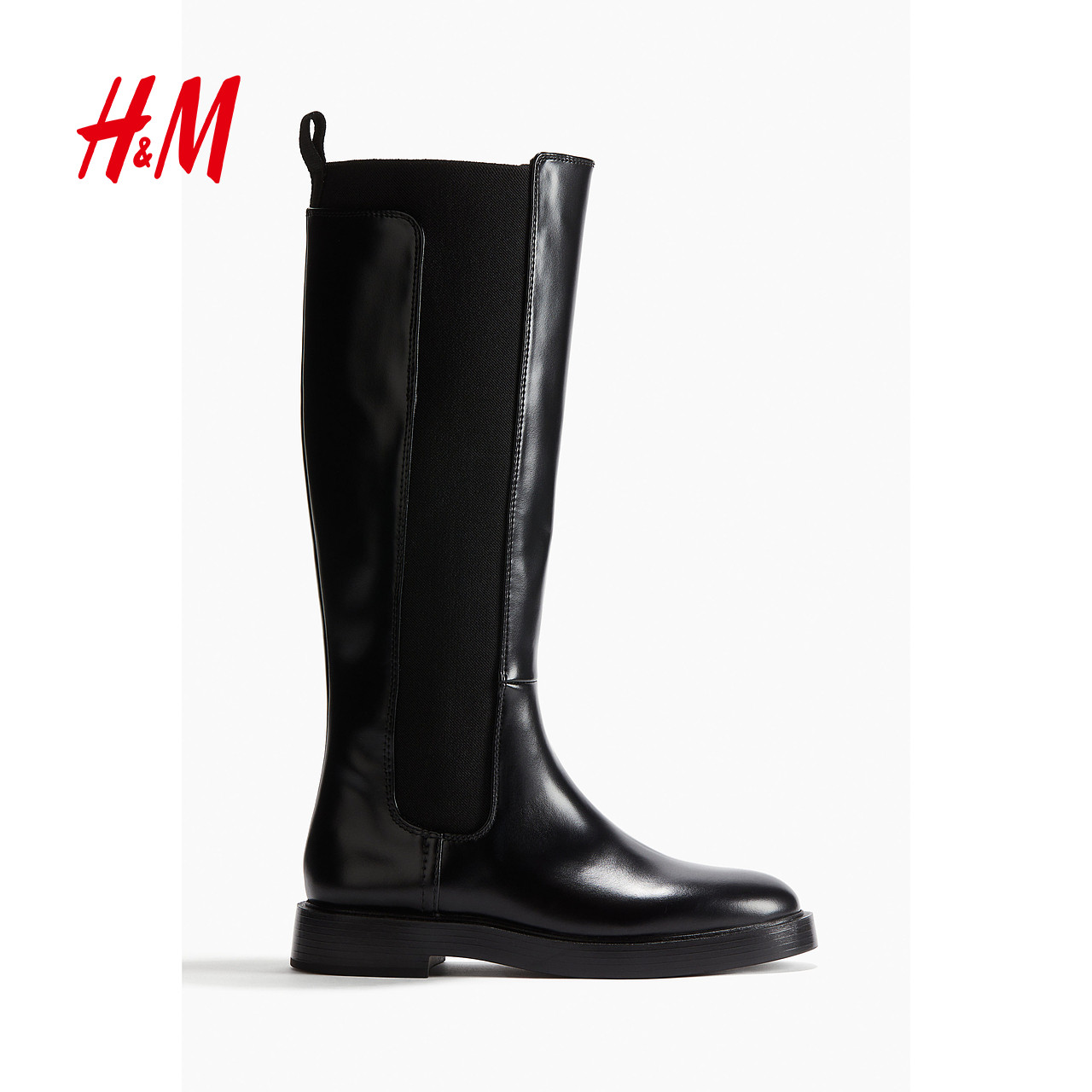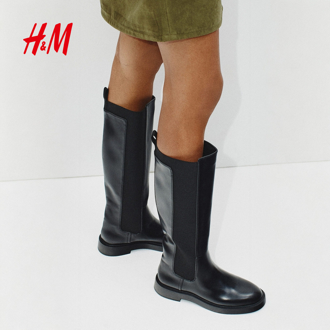 HM女鞋靴子2024年冬季新款圆头简约低跟潮流时尚及膝靴1240742