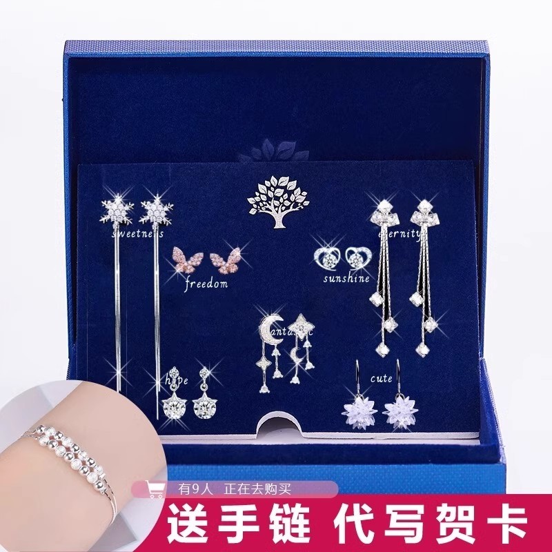 S925纯银一周耳钉耳饰品套装高级感银针耳环耳坠女轻奢气质礼物