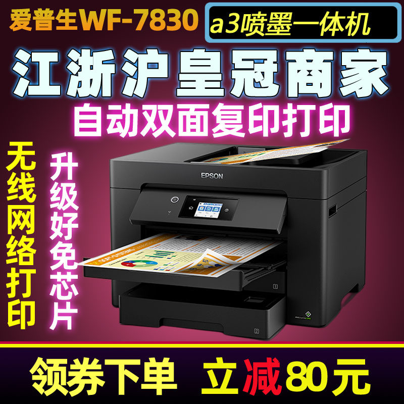 爱普生WF7845彩色喷墨a3打印机无线扫描复印一体机双面办公WF7830