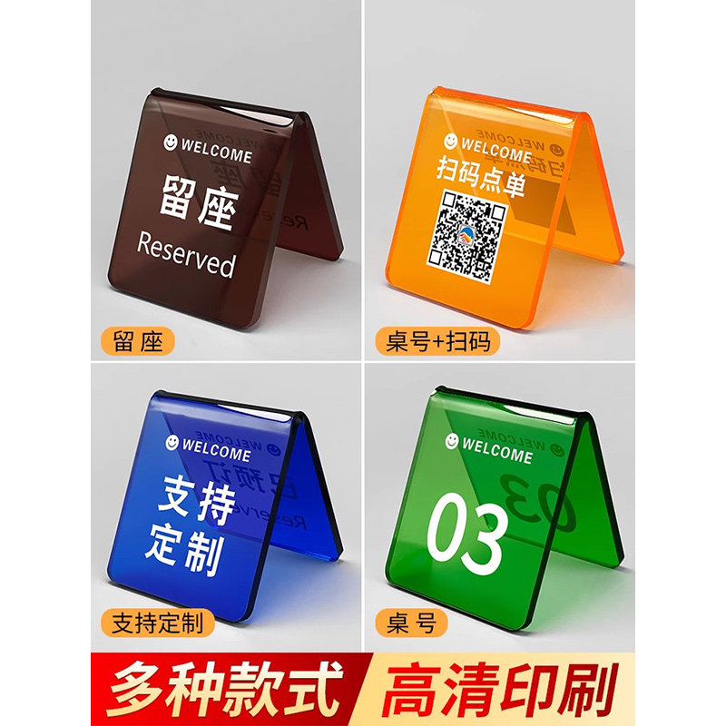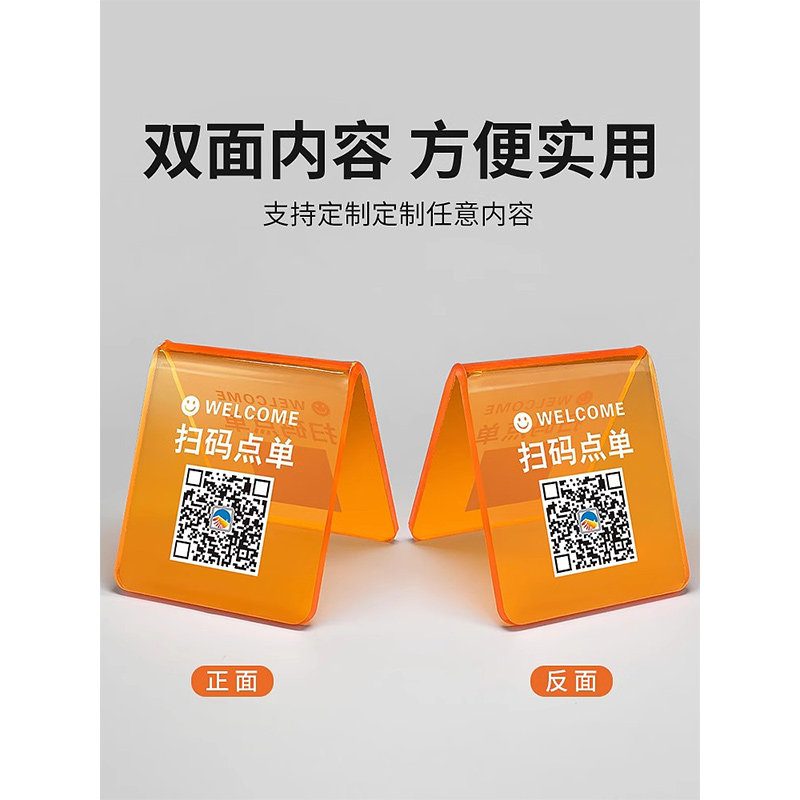 亚克力扫码点餐桌牌二维码展示牌定制双面桌号牌立式餐厅餐桌饭店桌面点单台卡餐饮台号牌座位立牌留座牌定做