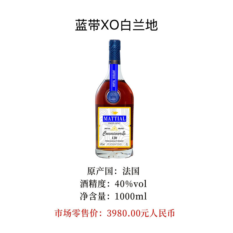 【原装正品】法国蓝带XO白兰地120周年1L双支礼盒装送礼40度洋酒