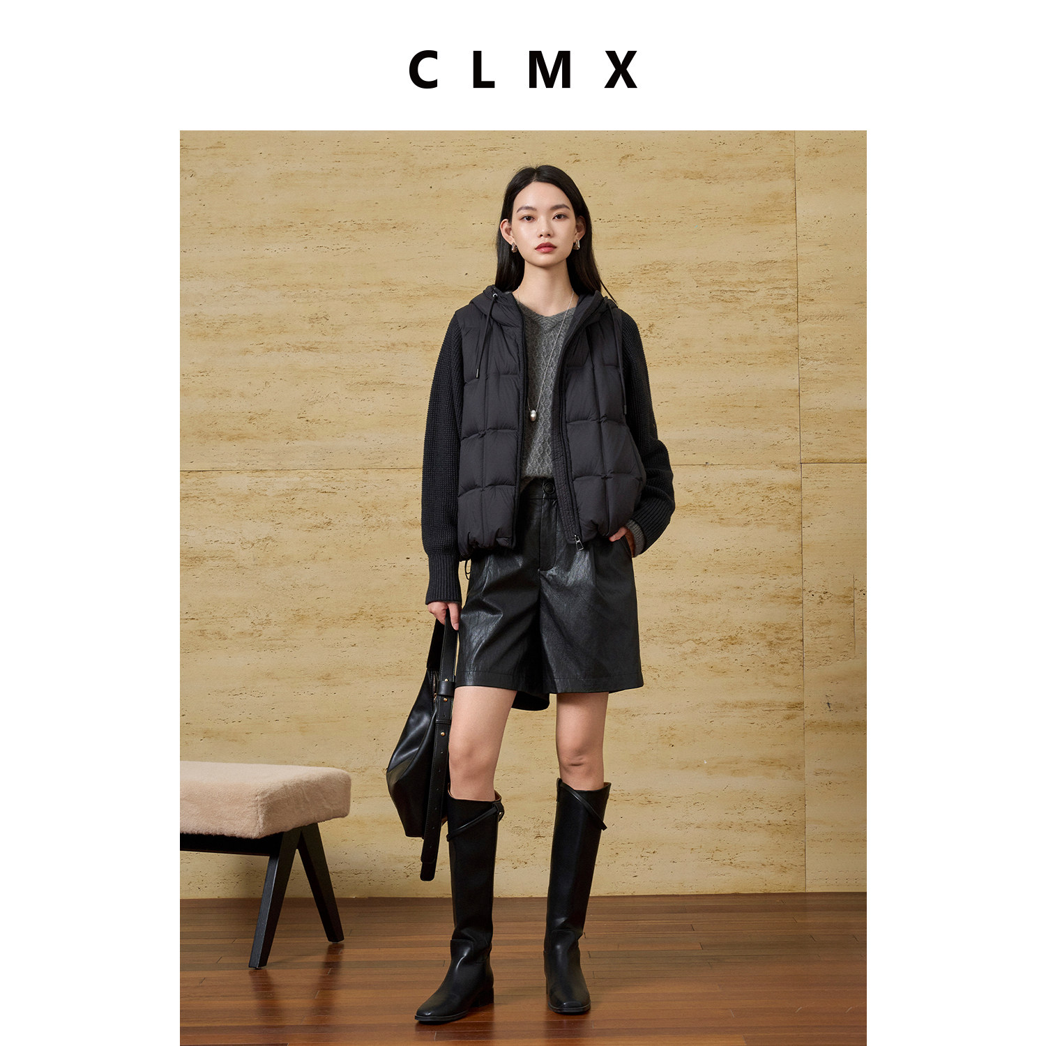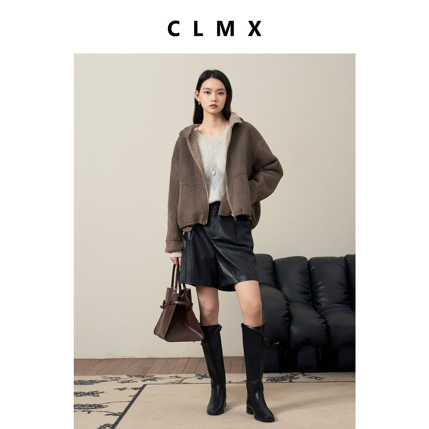CLMX无束缚哑光羊皮肌理感金属丝PU皮老钱风直筒版型显瘦显高短裤