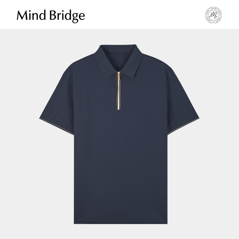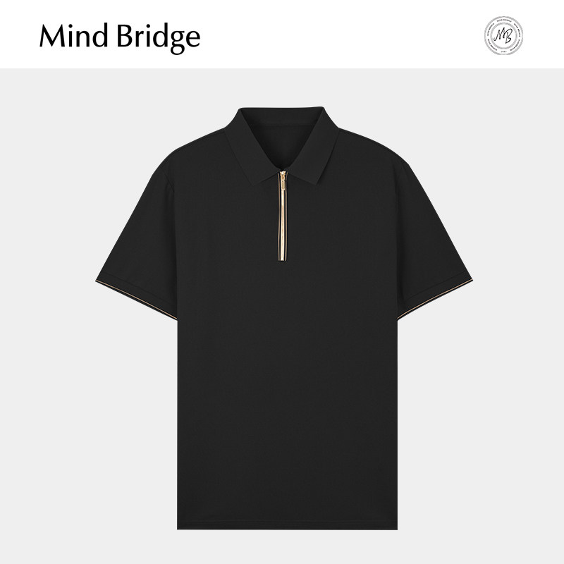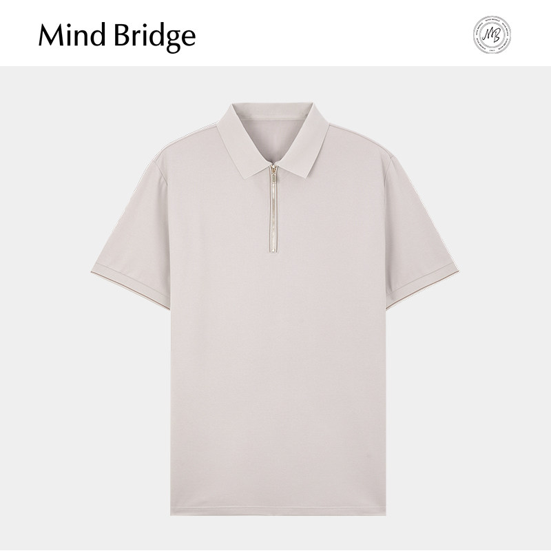 Mind Bridge男士纯色防晒短袖25夏季桑蚕丝T恤半拉链凉感翻领POLO