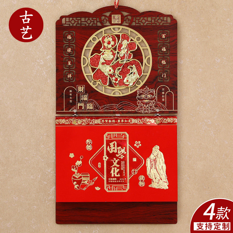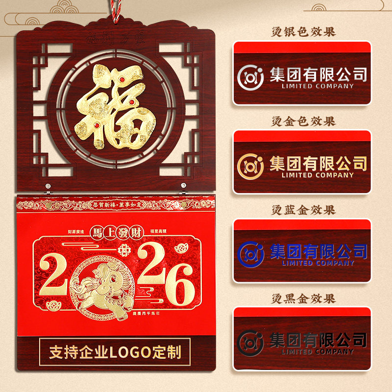 古典国风挂历2026年新款 木质手撕181张双日历定制家用挂墙福字吊历公司企业广告订制老式黄历精美礼盒制作