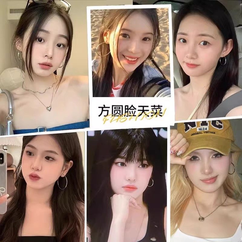 银色素圈大耳圈女款2025新款爆款圆圈耳环轻奢高级方圆脸圈圈耳饰