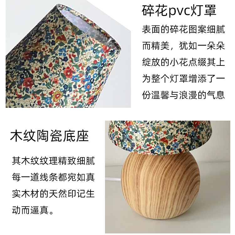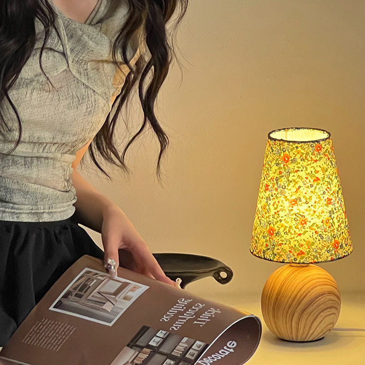 复古陶瓷碎花台灯床头灯中古灯高级感氛围灯客厅卧室高颜值小夜灯