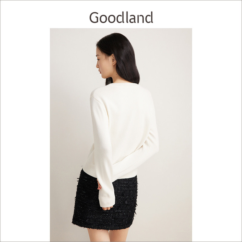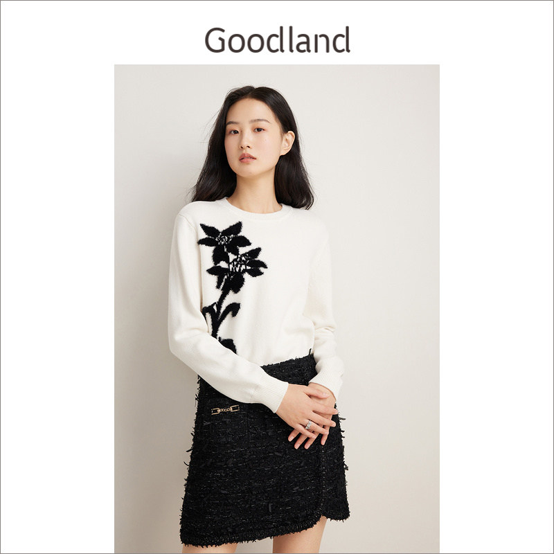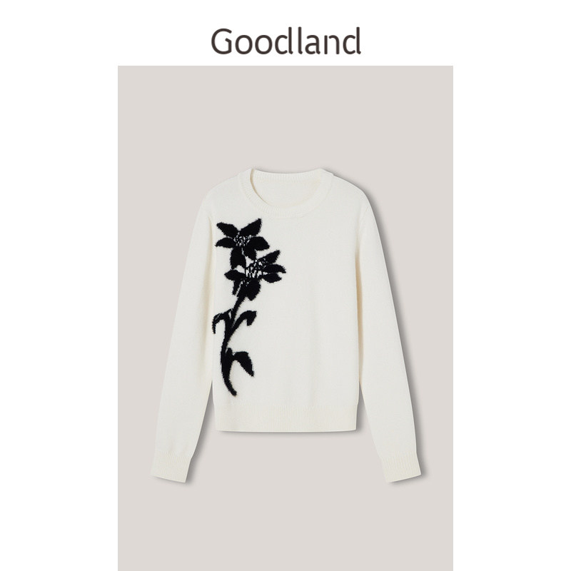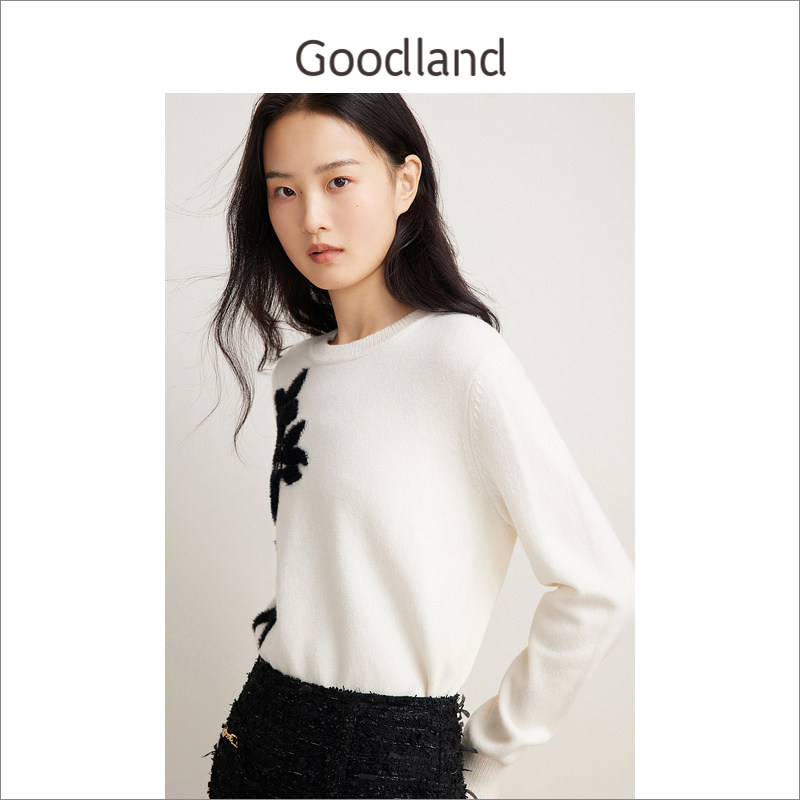 Goodland美地春季法式优雅小香风洋甘菊提花羊毛针织衫
