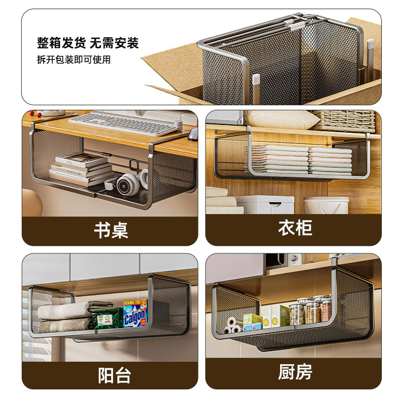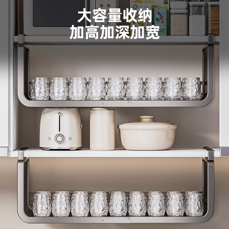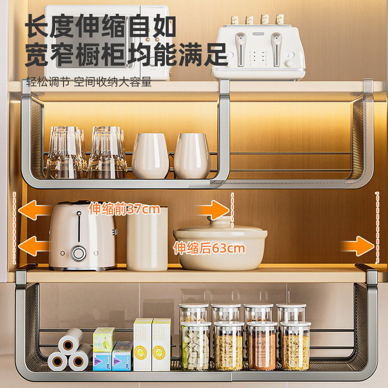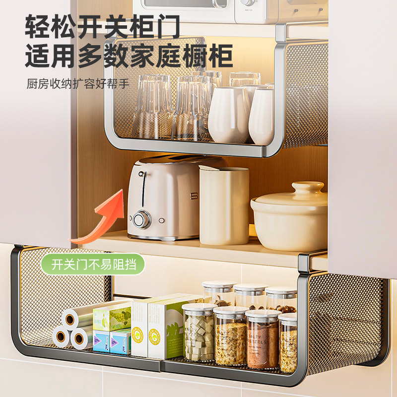 可伸缩厨房挂篮置物架收纳柜内分层悬下挂篮橱柜挂架收纳架吊柜下